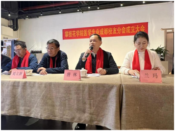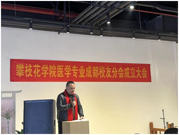 刘立新代表学校对各位校友的到来表示热烈欢迎,介绍了学校和医学专业发展历程和取得的跨越式成就。他指出,在一代代攀大人和广大校友的共同努力下,学校办学层次取得新突破,学科专业实力不断提升,人才培养质量稳步提高,科学研究和服务地方取得新成效。医学专业的校友们也在各自的岗位上践行着“健康所系性命相托”的誓言,为祖国的医药卫生事业发展贡献着自己的智慧与才干,用踏实的脚步走出了成功之路。他表示,相信医学专业成都分会的成立必将为基础学院、康养学院和校友,校友和校友之间搭建一个沟通、交流、相互扶持、互通有无、携手共进的平台,攀枝花学院永远是校友们的“家”,校友们永远是母校大家庭的一员。最后,他对医学专业成都分会提出了三点希望:要加强组织建设,将校友们凝聚在一起;要发挥桥梁纽带作用,希望各位校友通过组织找到有用资源,相互帮助;要在各自的岗位上奋斗争光,同时母校也将为校友们的发展添砖助力。